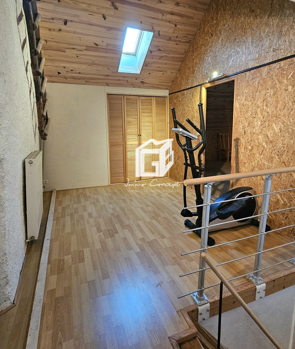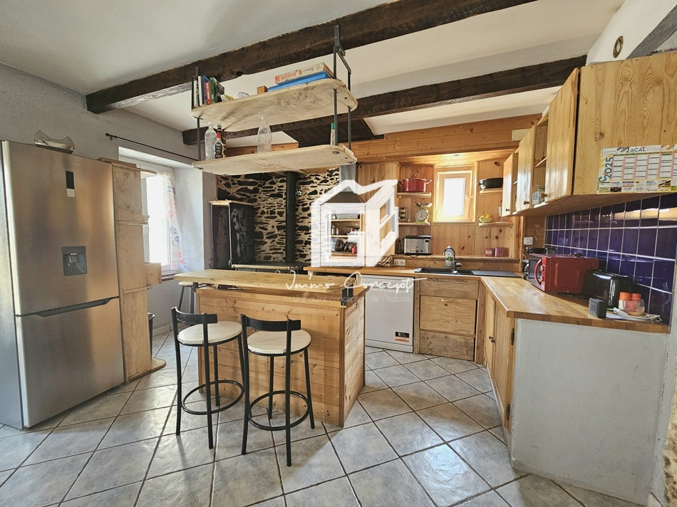 Une cave ainsi qu’un chauffage mixte (chaudière gaz + cuisinière à bois) complètent ce bien.
