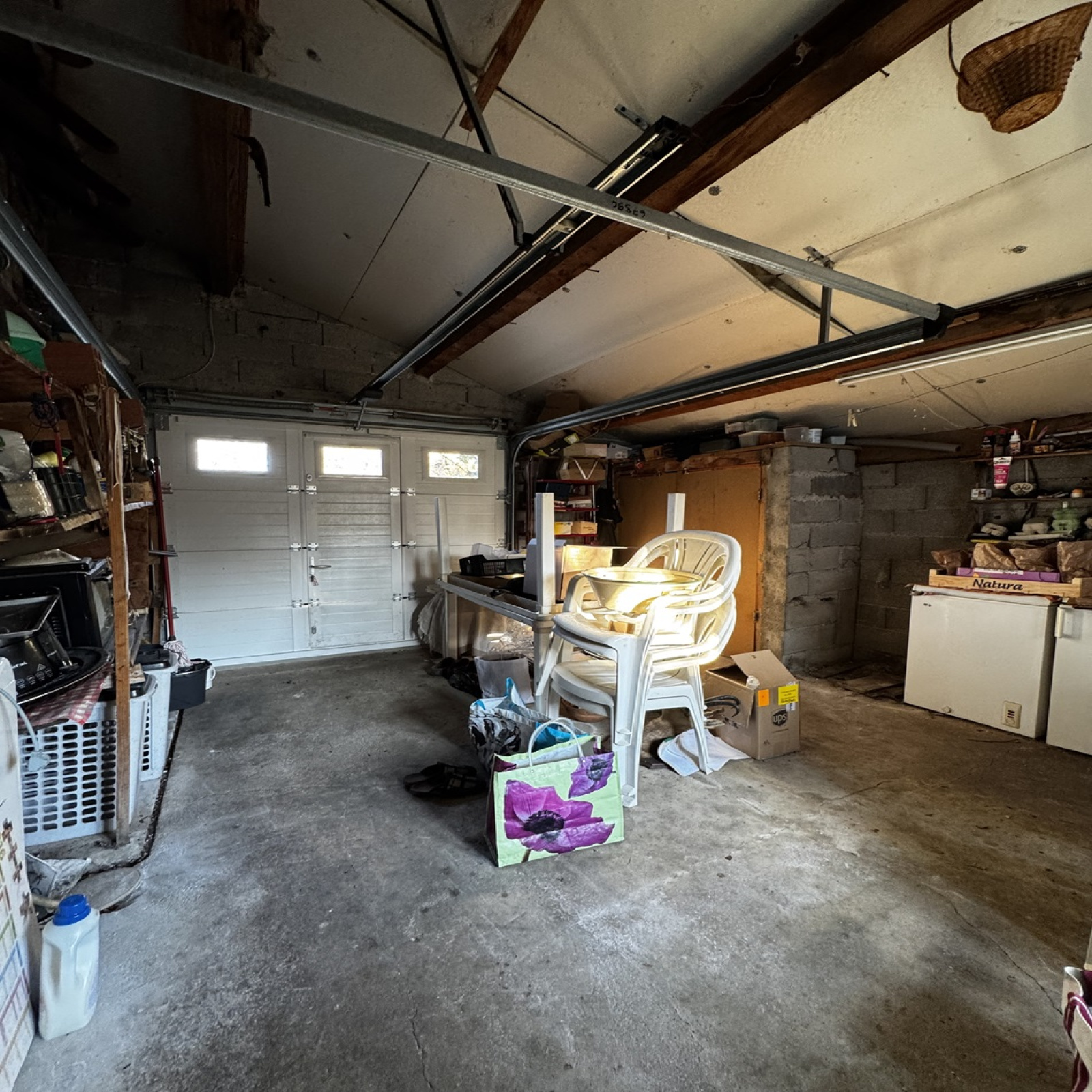 Le bien offre aussi une buanderie/cave, un garage de 20 m² avec portail sectionnel électrique, et un second garage non attenant à la maison.