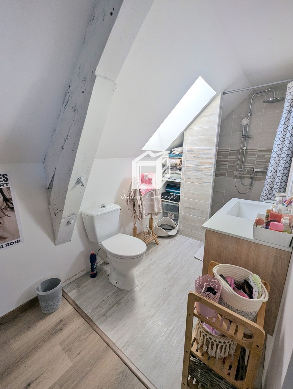 La maison dispose de trois chambres spacieuses, dont une avec salle d’eau privative.