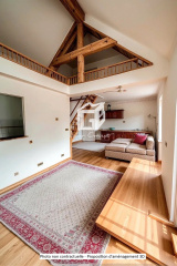 À l'étage, une mezzanine offre un pièce supplémentaire, idéale pour un bureau, un espace de détente ou de rangement.