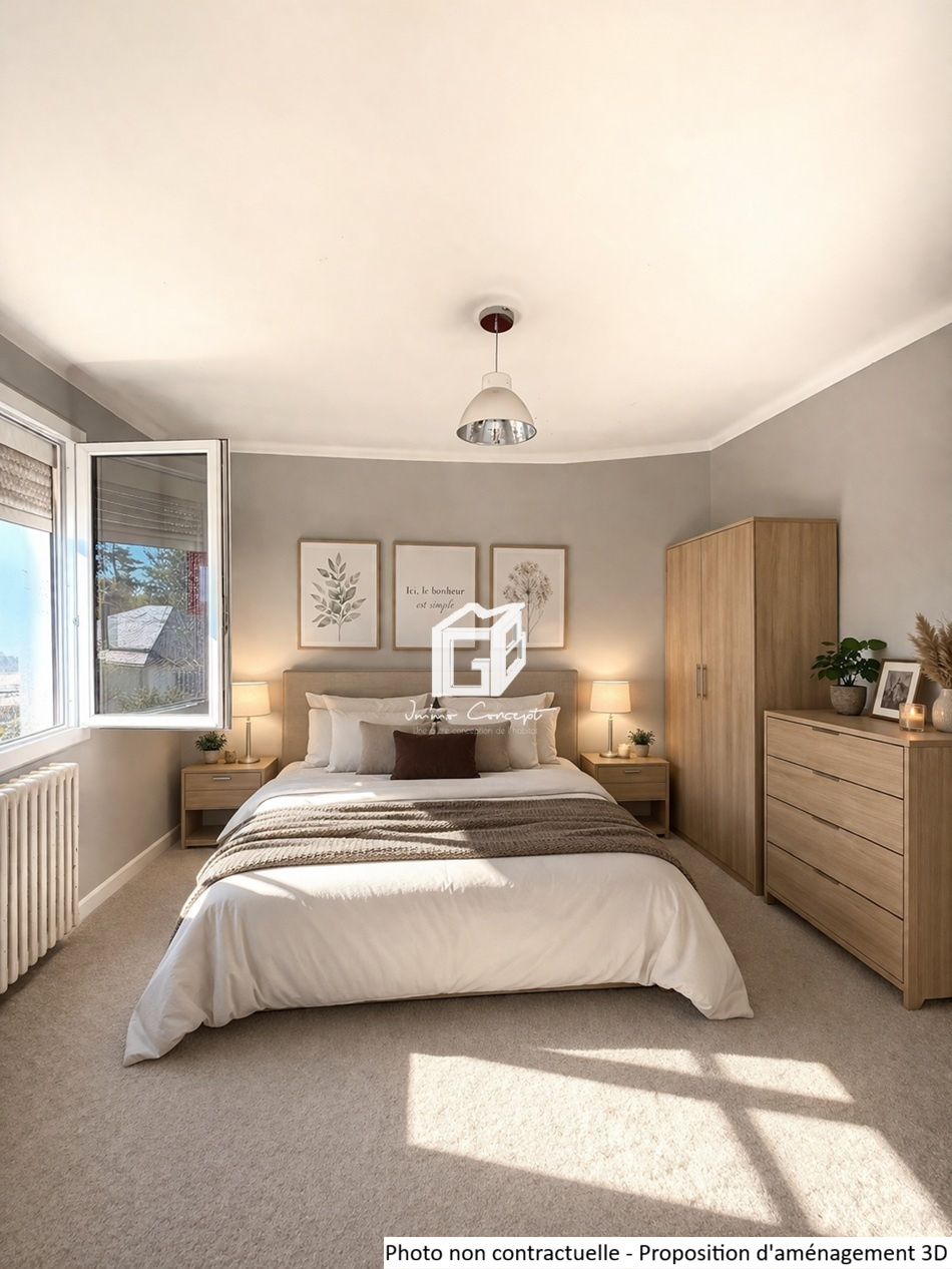 L'étage principal, correspondant à l'étage de vie, se compose d'un salon/séjour lumineux d'environ 30 m², de deux chambres ainsi qu'une salle d'eau. La configuration actuelle offre également la possibilité de créer une troisième chambre.