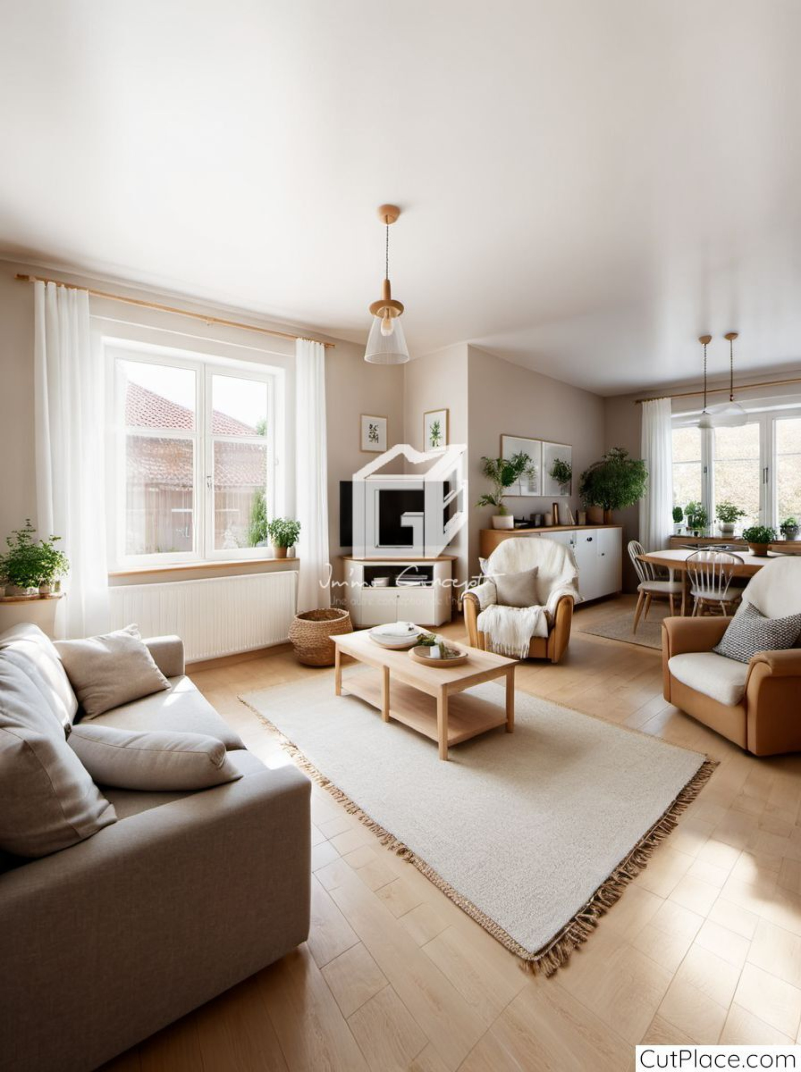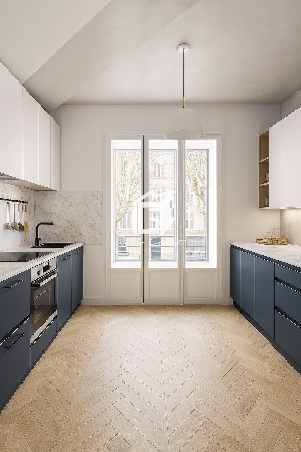 Dès l’entrée, un hall spacieux vous accueille, avec un escalier menant directement à la partie principale de l’appartement. Vous y trouverez trois chambres, un salon-séjour lumineux avec accès au balcon.