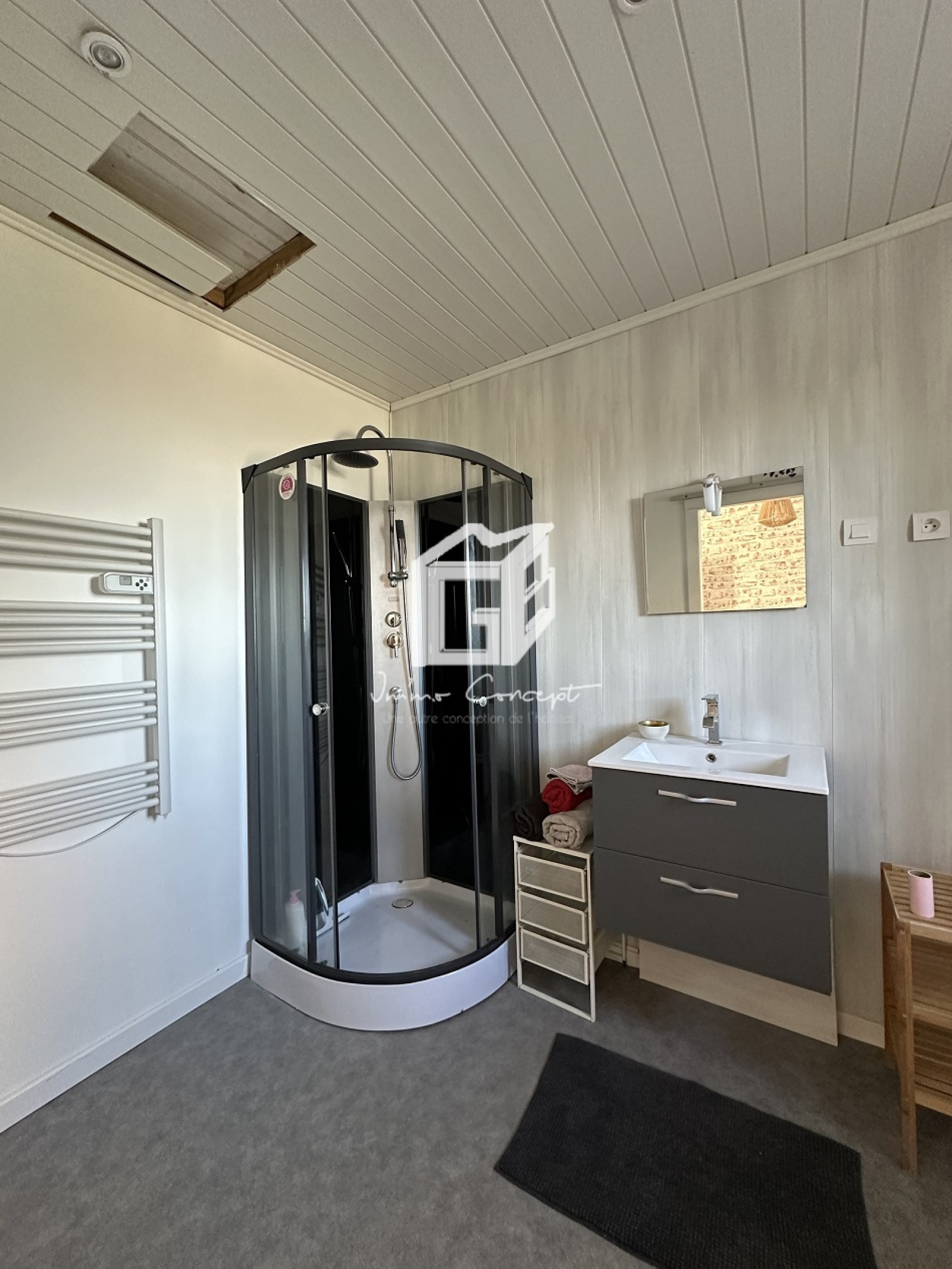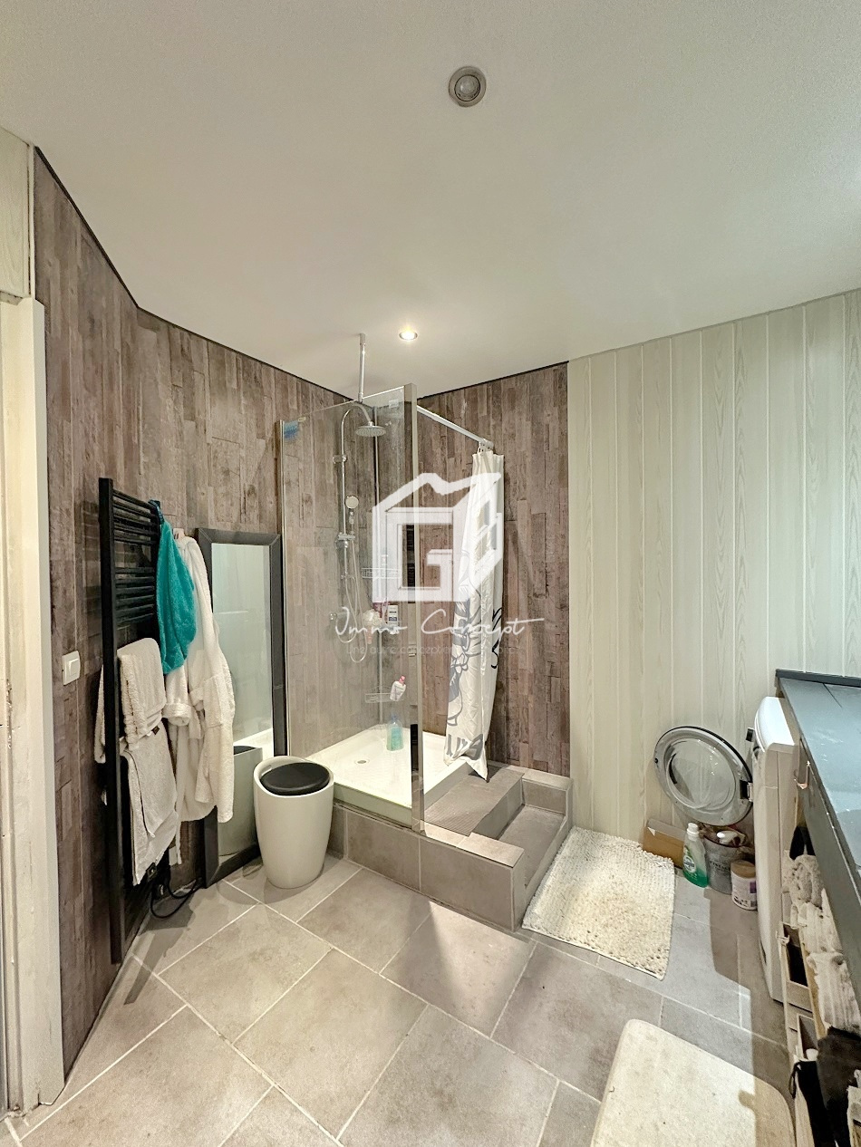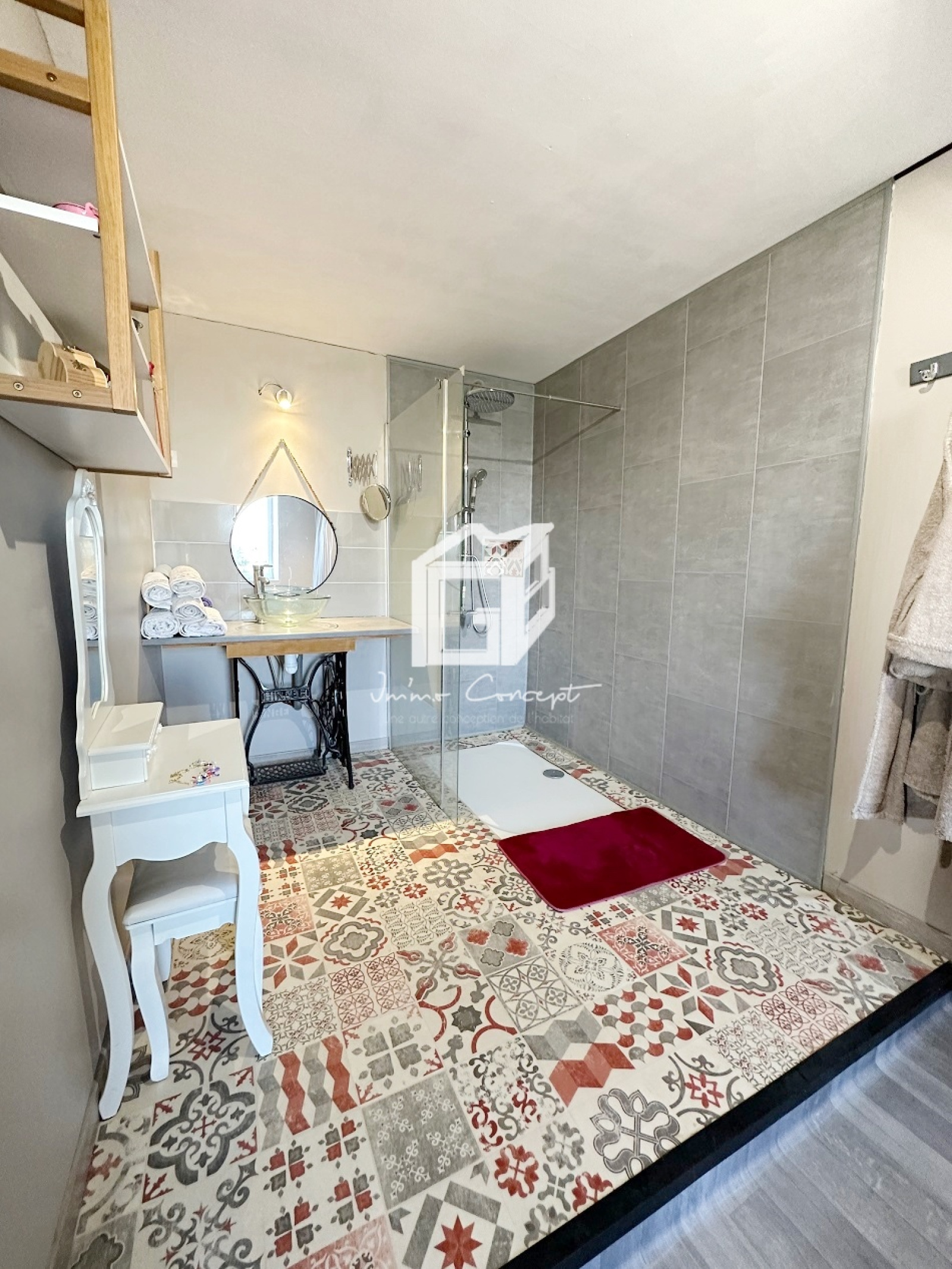À l’étage, deux chambres et une salle d’eau, mais surtout une véritable suite parentale d’environ 37 m² avec salle d’eau privative.