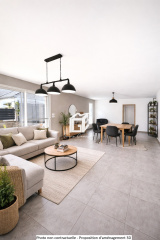 Dès l’entrée, vous découvrirez une belle pièce de vie spacieuse et baignée de lumière, composée d’un salon-séjour ouvert sur une cuisine moderne, parfaite pour partager des moments en famille ou entre amis.