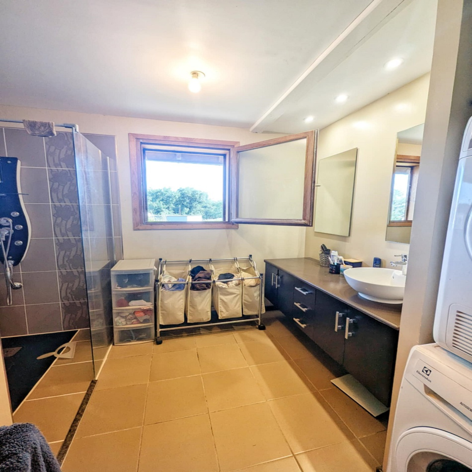 Une salle d’eau et un WC séparé,