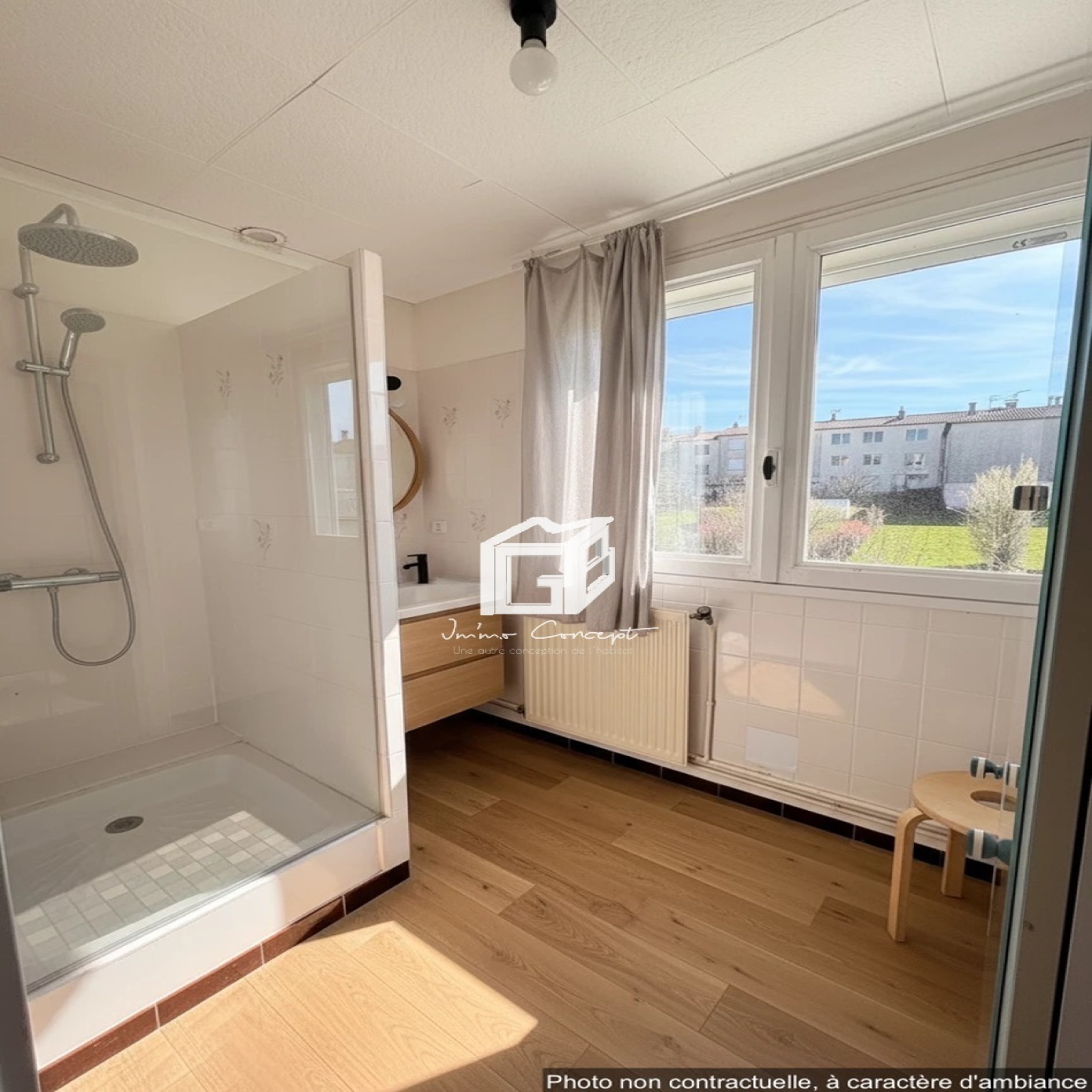 Le premier étage dévoile une pièce de vie lumineuse de 22 m², une cuisine indépendante, une salle d’eau, un WC séparé ainsi qu’une chambre.